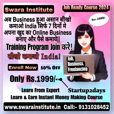Swara Institute Skill Development Training Center Online जहा आप Training ले कर रोजगार पा सकते है वो भी IT Industry मे आज ही Admission ले और अपने भविष्य को बेहतर बनाए swara Institute Skill Development Training Center Online.
